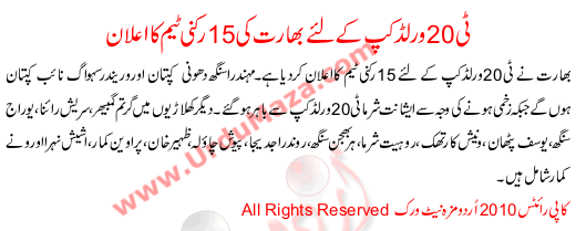 15 Memeber Indian Squad Announced For Worldcup T20 2010