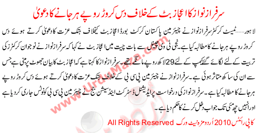 Sarfraz Nawaz Sued Ijaz Butt For Ten Carores In Local Court