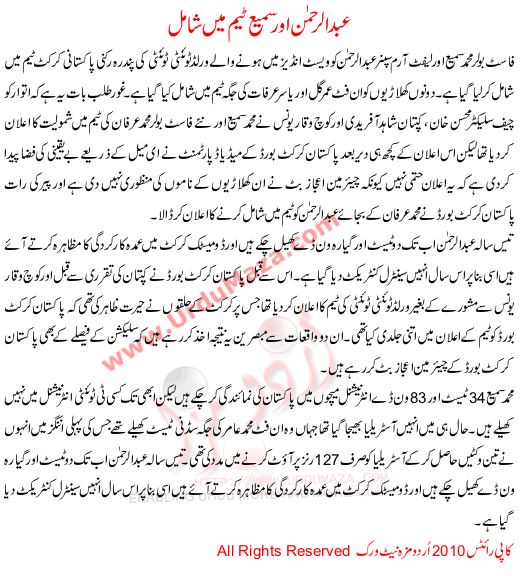 Abdul Rehman And Muhammad Sami To Play In T20 World Cup