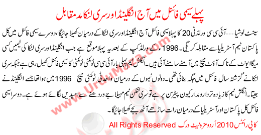 First Semi Final Of T20 Worldcup 2010 Will Be Played Today Between England And Sri Lanka