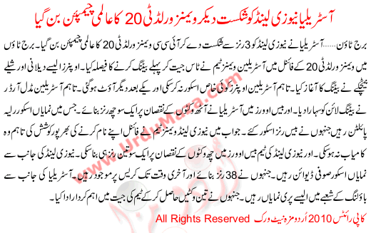 Australia Women Team Won Women T20 Worldcup 2010 By Beating Newzealand Women Team
