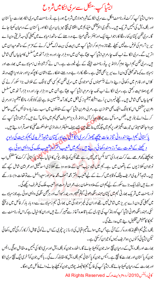 Asia Cup Mangal Sa Sirilanka Ma Start