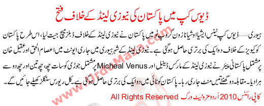 Devis Cup Me Pakistan Ki Newzealand K Khiilaf Ftah