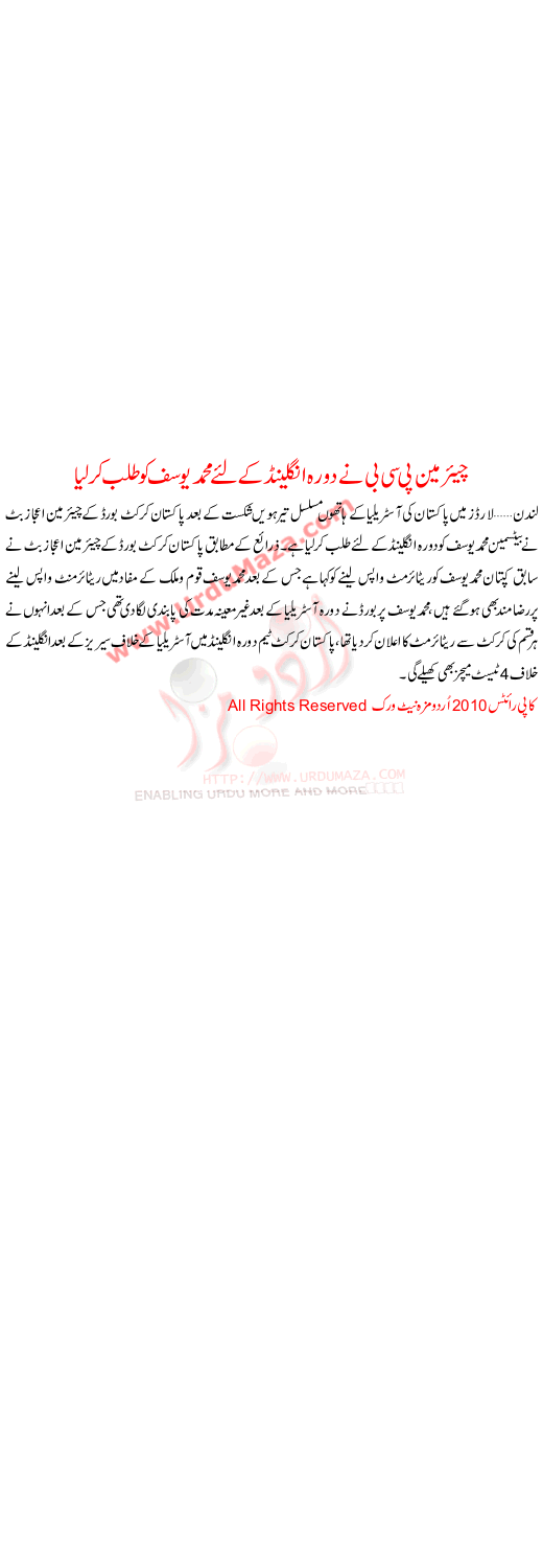 Ijaz Butt Na Dora E England K Liay Muhammad Yousaf Ko Talab Kr Lia
