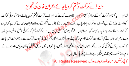 Imran Khan Na Oneday Cricket Khtm Krnay Ki Tajweez Da Di