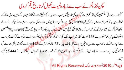 Sachin Tendulkar Ka Sb Sa Zyada Test Matches Khelnay Ka Record