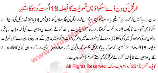 Umer Gull Ki Oneday Ma Shamooliat Ka Fesla 18 Aug Ko Ho Ga