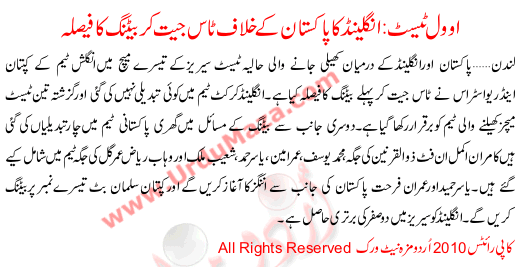 England Ka Pakistan K Khilaf Toss Jeet Kr Beting Ka Fesla