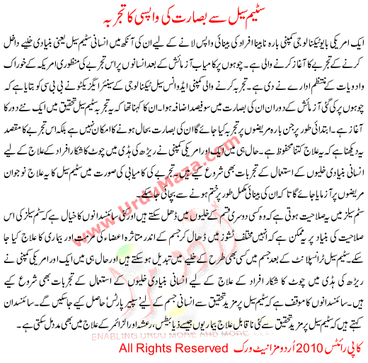 Steam Cell Sa Basarat Ki Wapsi Ka Tajarba