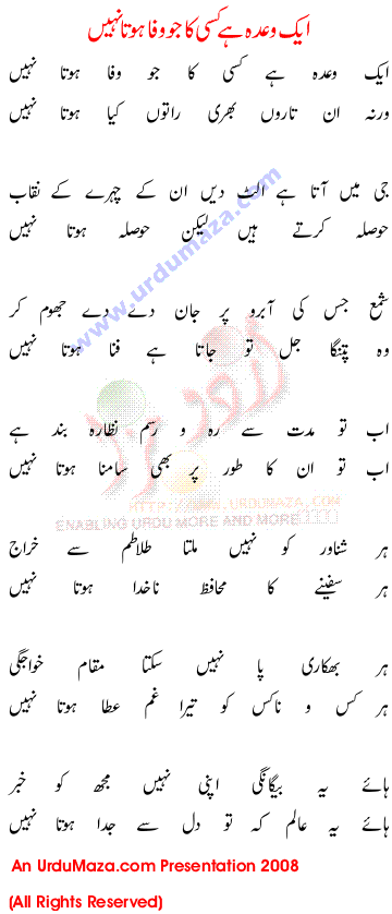 Aik Wada Kisi Ka Jo Wafa Nahi Hota